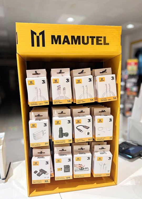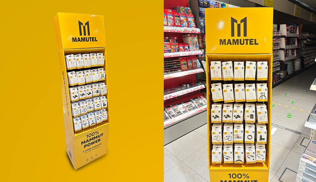 Mit Mamutel profitieren Handelspartner von einer Marge von bis zu 60 %, attraktiven Verkaufspreisen und starkem POS-Material wie unseren Boden- und Tischdisplays. So bleibt der Verkauf einfach – und rentabel.